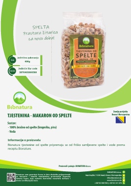TJESTENINA - MAKARON OD SPELTE Bosna i Hercegovina