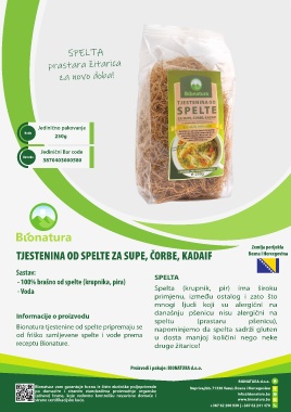 TJESTENINA OD SPELTE ZA SUPE, ČORBE, KADAIF Bosna i Hercegovina