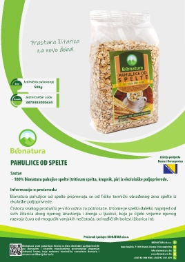 Bionatura pahuljice od spelte pripremaju se od friško termički obrađenog zrna spelte iz