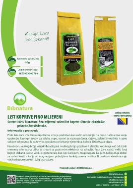 Proizvodi i pakuje: BIONATURA d.o.o.